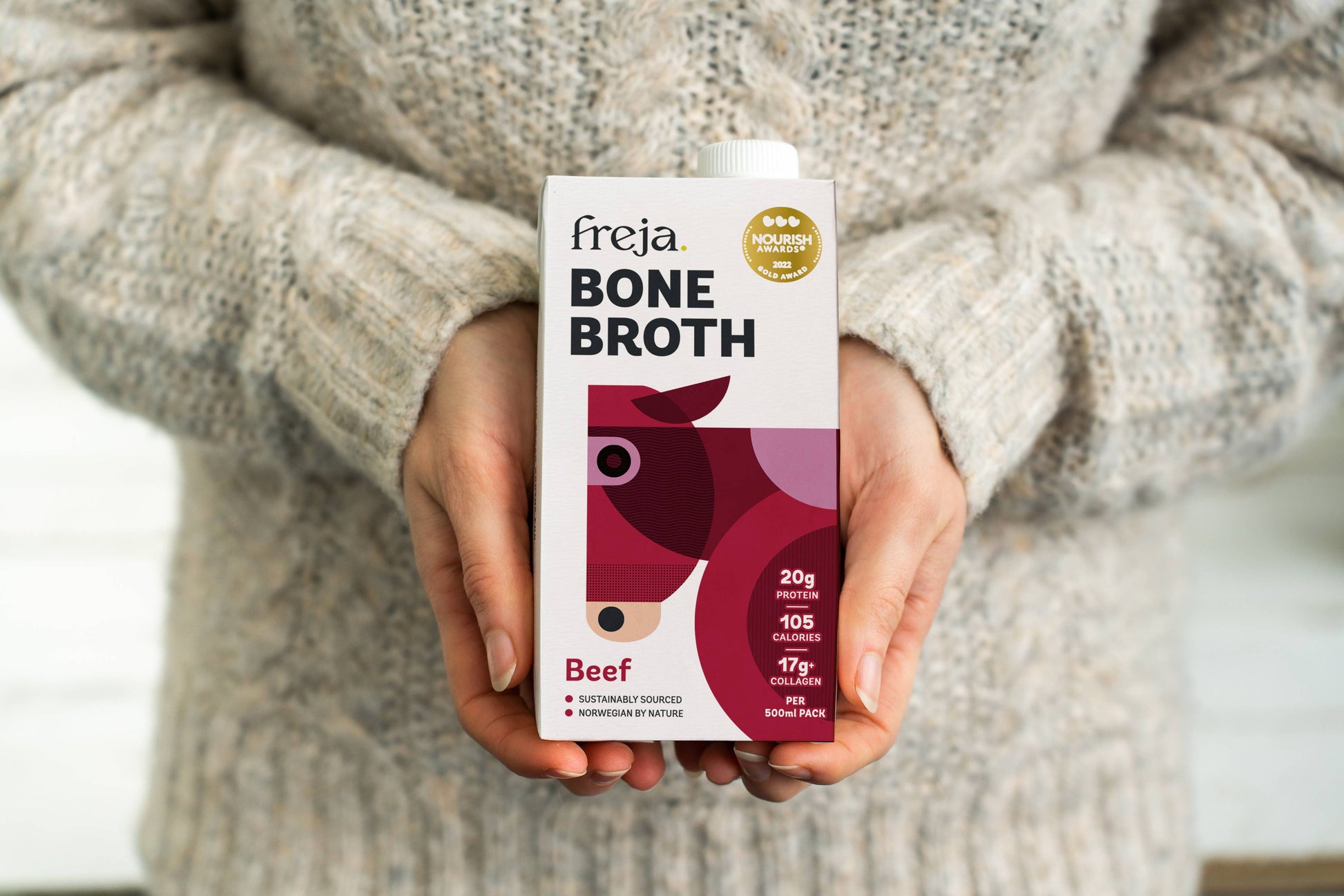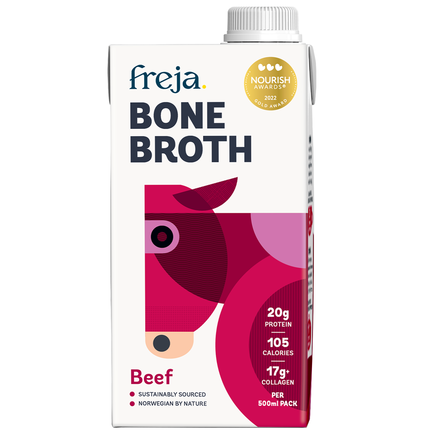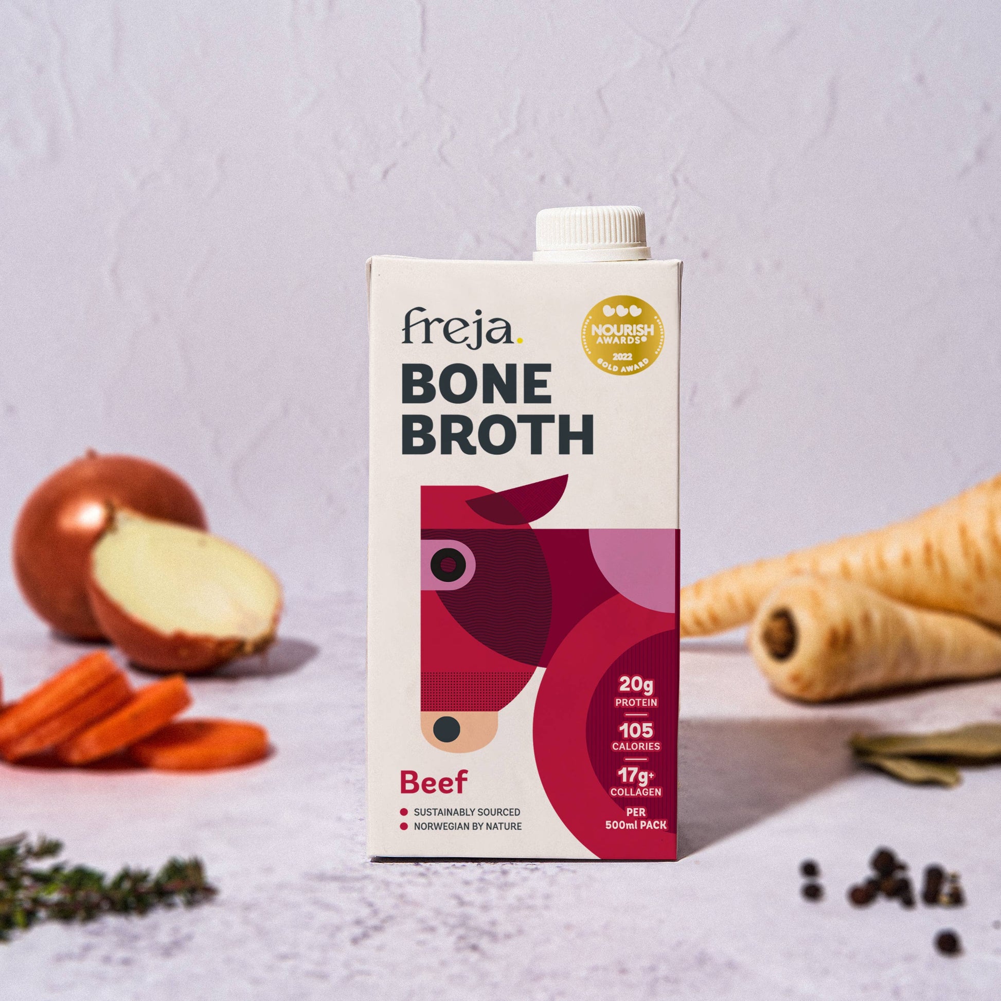 Freja’s Classic Bone Broth is a slow-simmered, savoury liquid made from responsibly sourced Norwegian grass-fed beef bones and wholesome vegetables. Rich in natural collagen, amino acids, and minerals, it’s perfect for sipping as a nourishing drink or using to elevate your savoury recipes.
