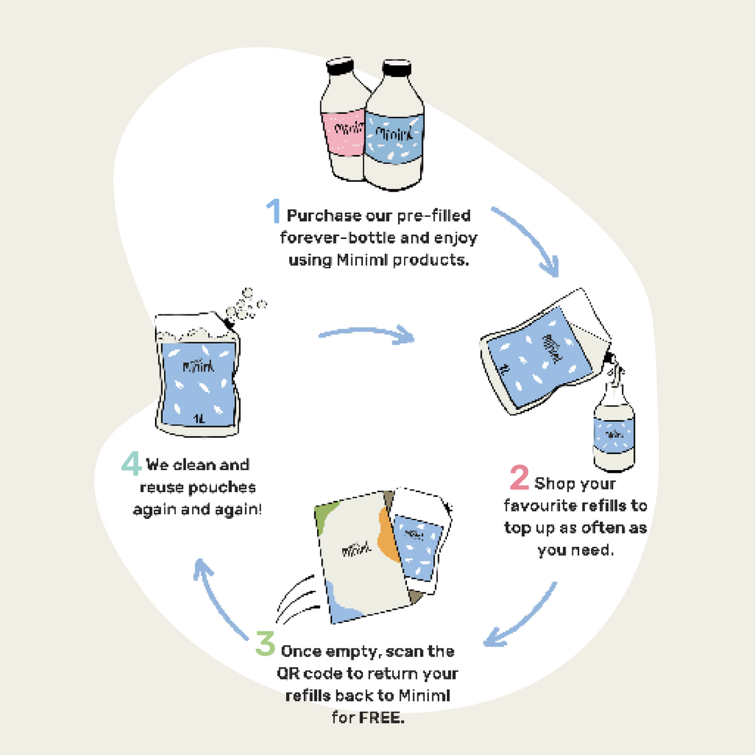 We're proud to offer a refillable, zero-waste solution. Used bottles are collected, cleaned, and refilled—minimizing waste and helping us maintain a truly circular system. Our entire line is formulated, bottled, and shipped from Yorkshire, UK, supporting local communities and reducing transport-related emissions.
