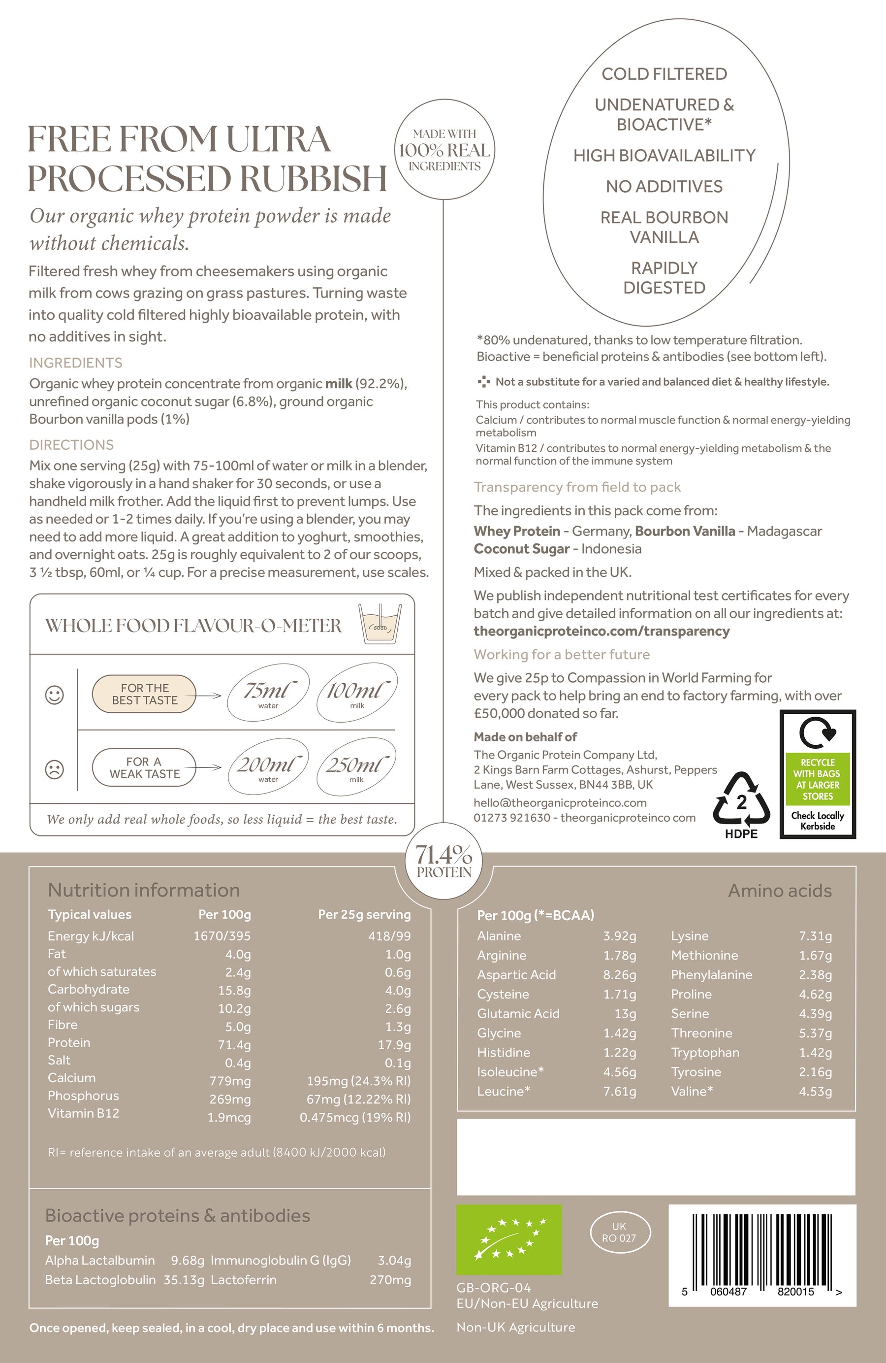 The Organic Protein Co. Madagascan Vanilla Organic Whey Protein 400g