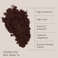 Unlock a daily wellness upgrade with KIKI Health Organic Acai Powder a vibrant, nutrient-dense superfood made from 100% pure, raw acai berries (Euterpe oleracea), responsibly wild-harvested from the Amazon rainforest and freeze-dried to preserve their natural potency. These dark purple berries are celebrated for their rich antioxidant content, healthy fats, and essential minerals supporting everything from skin health and cellular repair to energy metabolism and overall vitality.