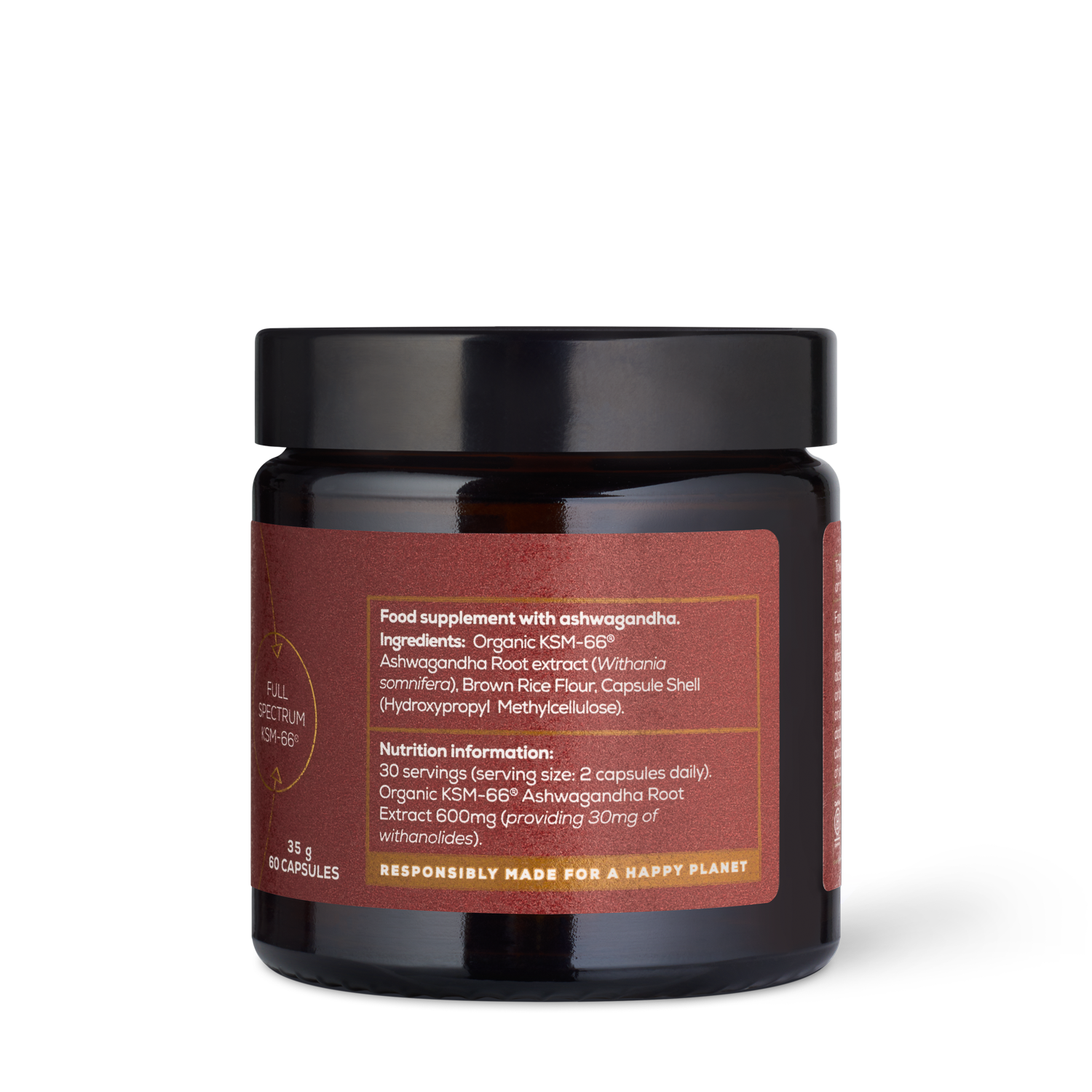 - Organic KSM-66® Ashwagandha Root Extract (Withania somnifera) – 600mg